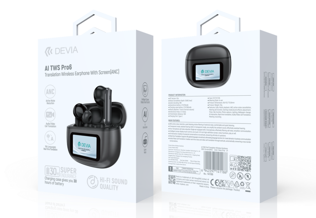 С DEVIA AI TWS Pro6 това изчезва. Просто слагаш безжичните слушалки – и светът започва да говори на твоя език.