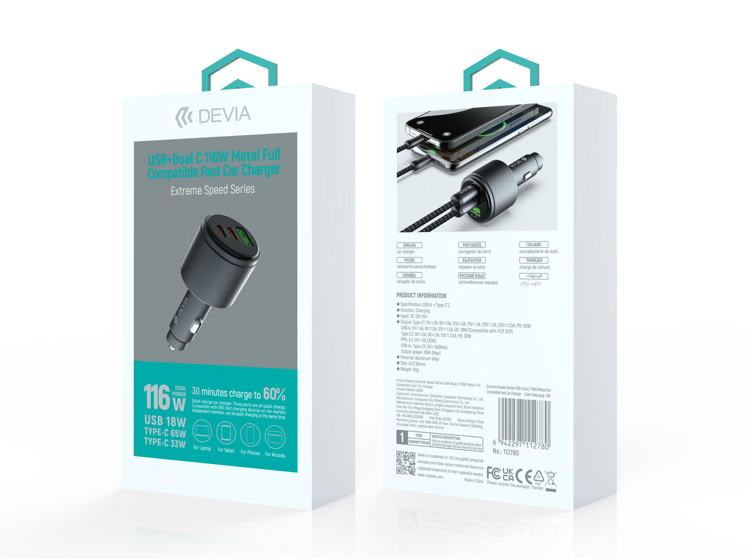 Extreme Speed Series USB+Dual C 116W Metal Full Compatible Fast Car Charger
