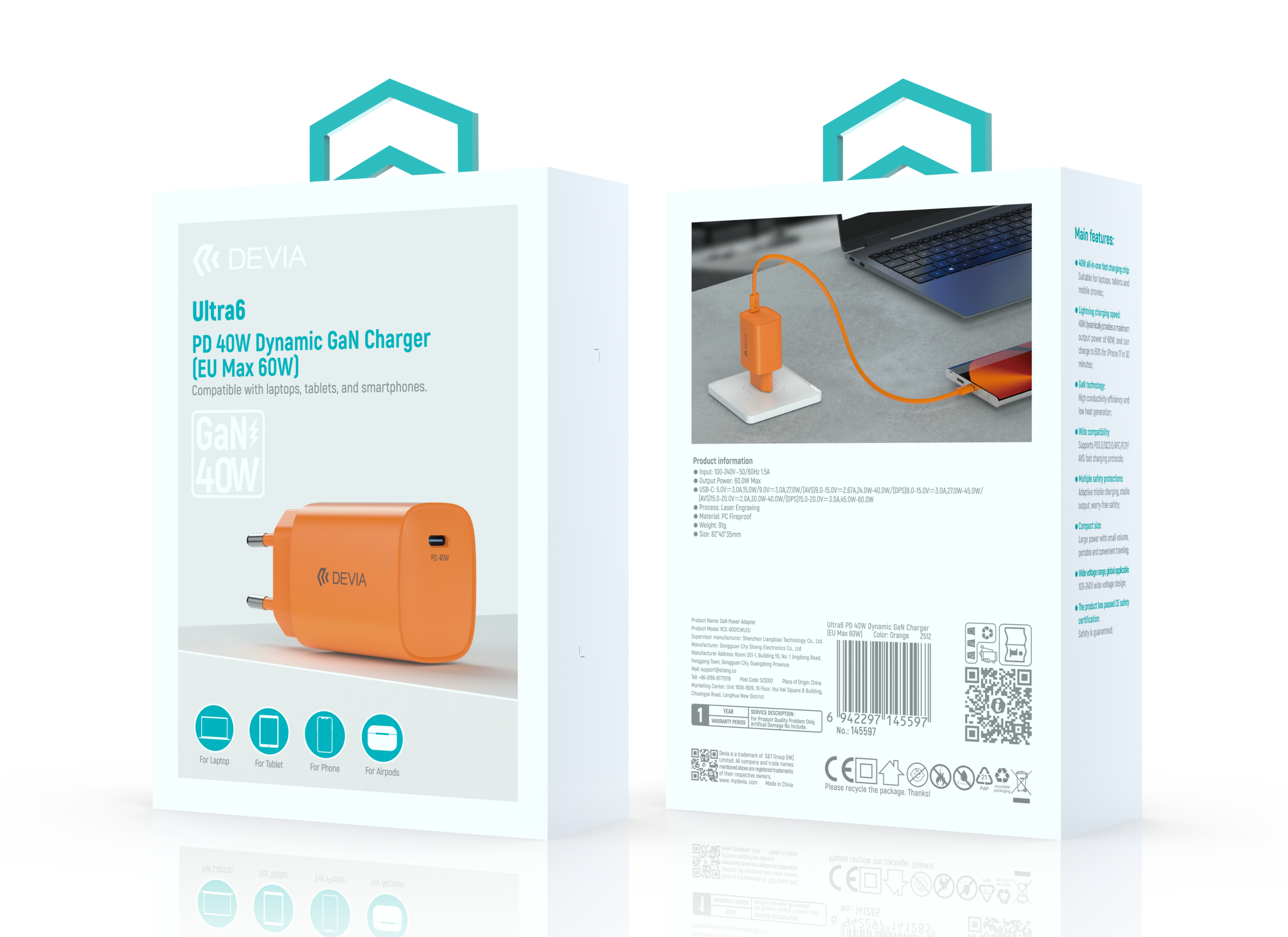 Ultra6 PD 40W Dynamic GaN Charger (EU Max 60W) Orange